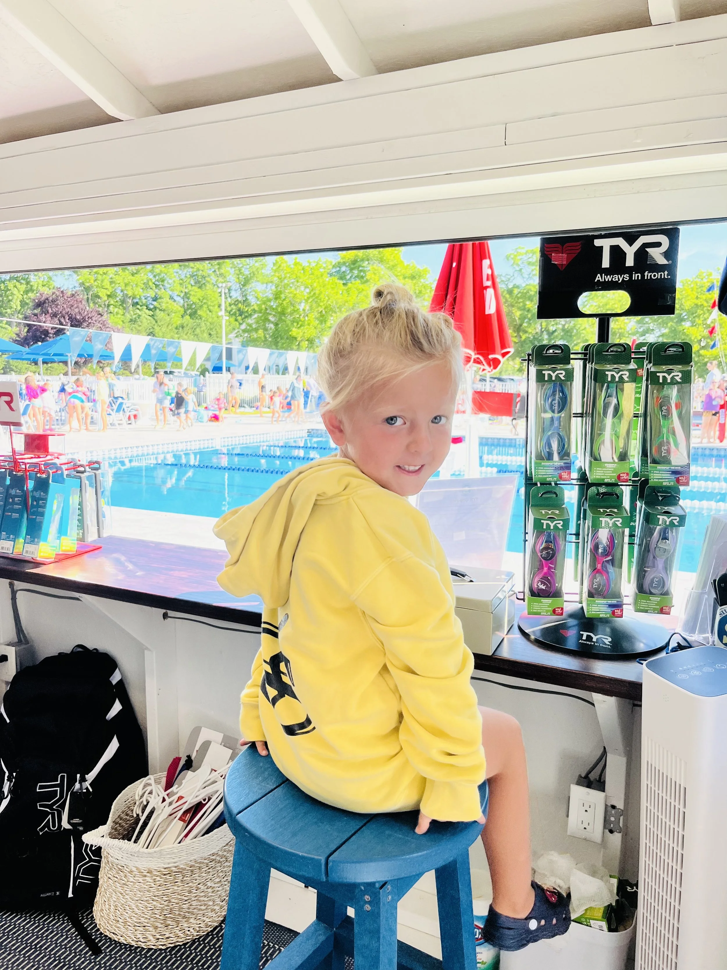 Savvy’s Swim Shop was officially established in 2022 and named after one of Mrs. Leete’s great grandchildren, Savannah, aka Savvy! Savvy is already an avid swimmer at age 5. When Savvy is not in her swim shop, you can find her swimming in the pool all summer long!
