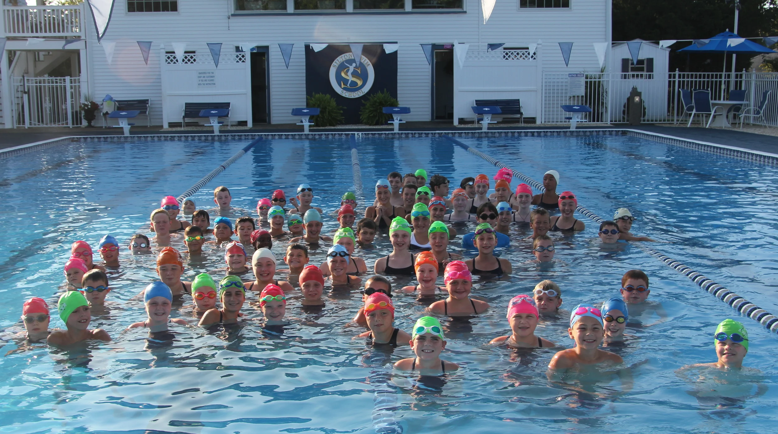 Silton Swim Team members wearing their Silton vs. Cancer caps!